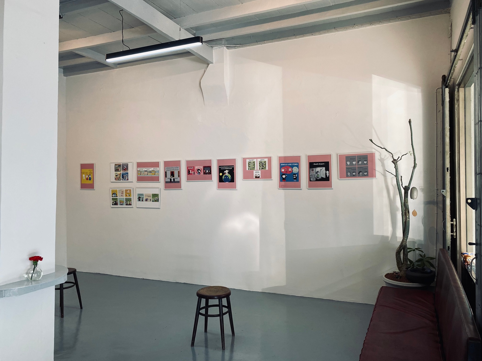 งานแสดงแรกของ P.SPACE ชื่องาน Death is All Around ผลงานการ์ตูนที่พูดเรื่องความตาย ให้น่ารัก เพื่อชวนผู้คนชายตาแลมองความตายได้ง่ายและบ่อยขึ้น จากเพจ Angelofdeathboy