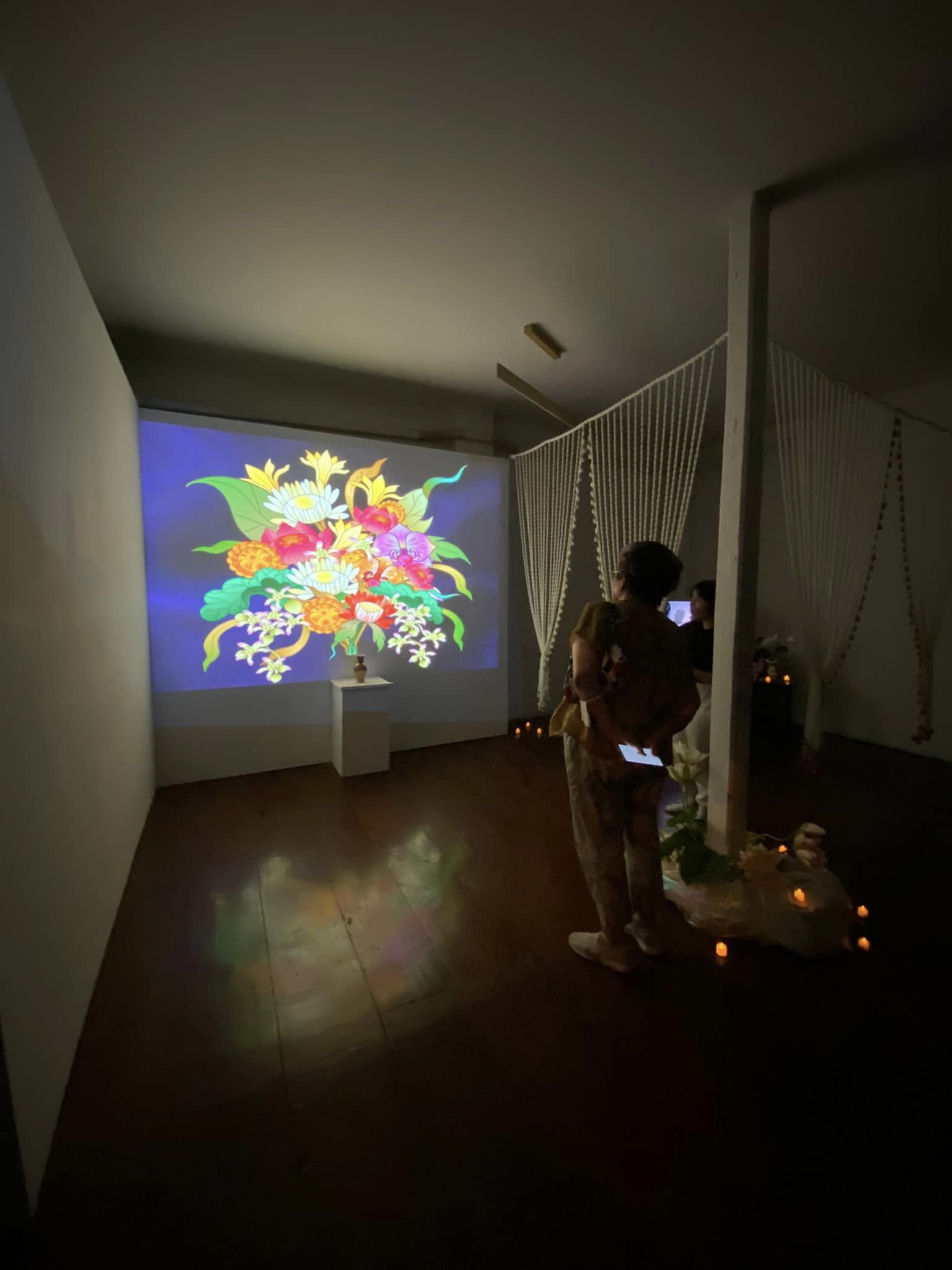 ดอกไม้ไทย หลายครั้งถุกลืมเลือนและทดแทนด้วยนอกไม้นำเข้า ศิลปิน DAOPUD ตีความความพยายามอนุรักษ์ดอกไม้ไทย ผ่านงาน projection mapping ที่แสดงดอกไม้เบ่งบานเมื่อเดินเข้าใกล้ และดอกไม้ห่อเหี่ยวเมื่อเราเดินห่าง เปรียบเหมือนหากปราศจากความสนใจ ดอกไม้ไทยเหล่านี้ก็จะเหี่ยวแห้งและตายจากไป