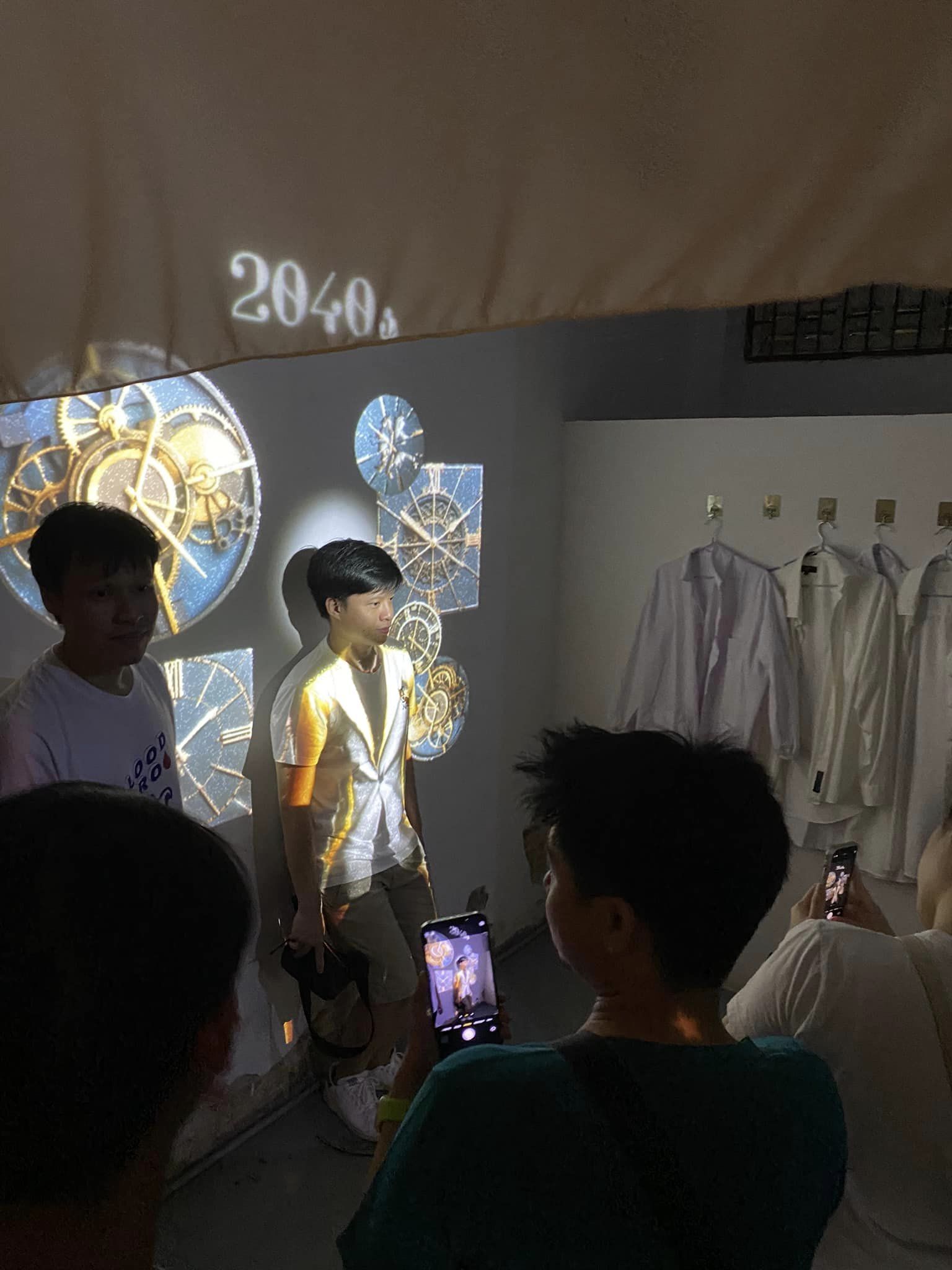 ผลงาน projection mapping ที่ชวนให้ลองเปลี่ยนแฟชั่นของตัวเองไปตามแฟชั่นของแต่ละยุค ตั้งแต่ยุค 1960 ไปถึงแฟชั่นยุคอนาคต
