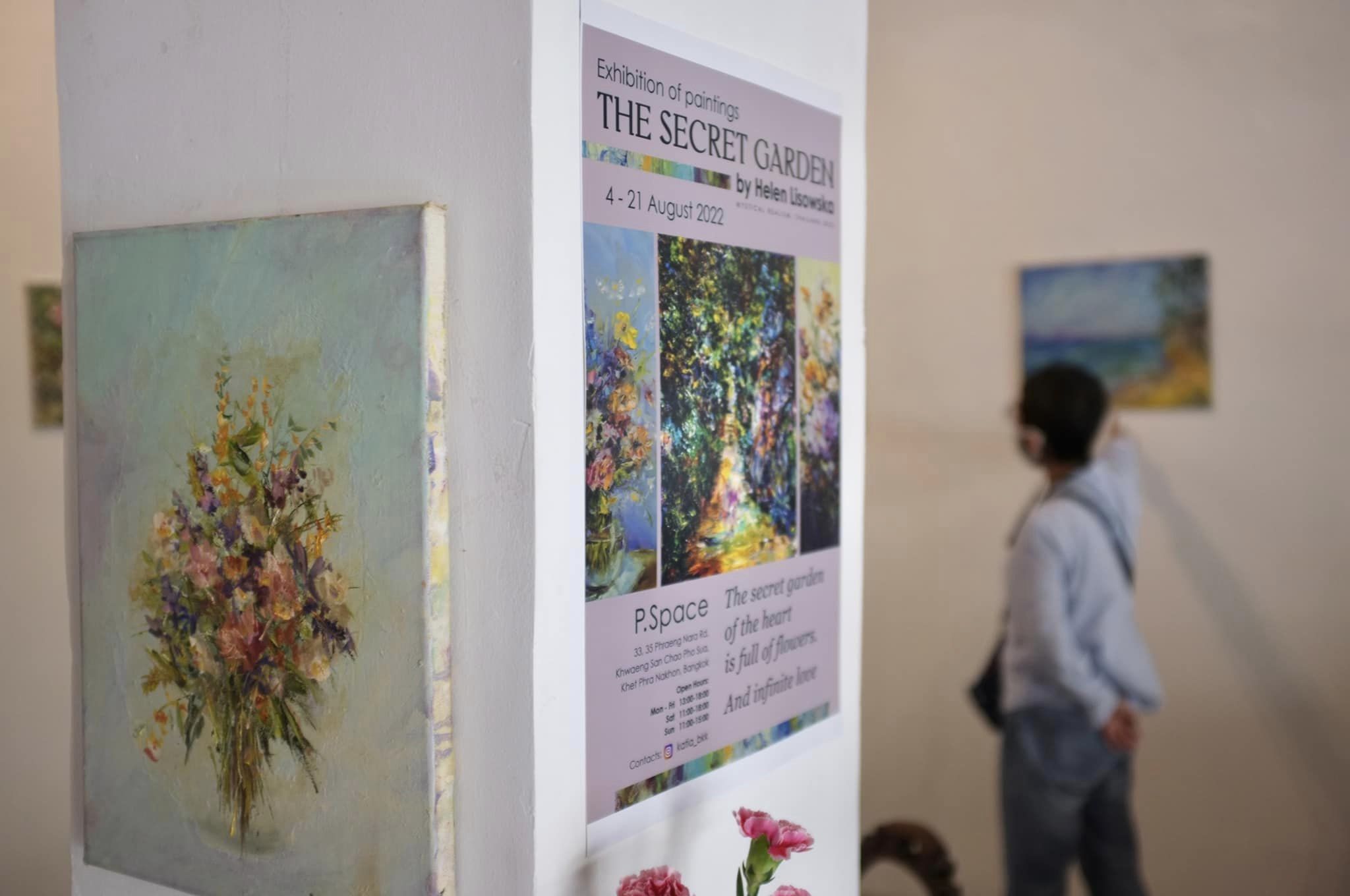 งานแสดงครั้งที่ 8 Exhibition of paintings The Secret Garden by Helen Lisowska ระหว่างวันที่ 4-21 สิงหาคม 2565 งานแสดงภาพวาดสีน้ำมัน ของคุณ Helen Lisowska ชาวรัสเซีย อายุ 74 ปี ผ่านการจัดงานของลูกชายและลูกสาวสองคน บรรยากาศน่ารัก อบอุ่น และรู้สึกได้ถึงความสุขที่เกิดขึ้นในครอบครัว ภาพสวย ราคามิตรภาพสุดๆ